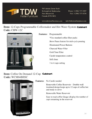 Item: 12-Cups Programmable Coffeemaker and Hot Water System