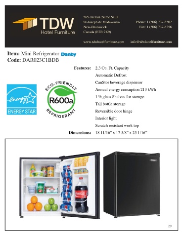 Features: 2,3 Cu. Ft. Capacity