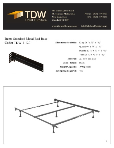 Code: TDW-1-120 Dimensions Available: King: 76 ” x 73” x 7 ½”