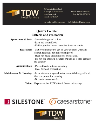 Resistance: -Not recommended to cut on your counter. Quartz is