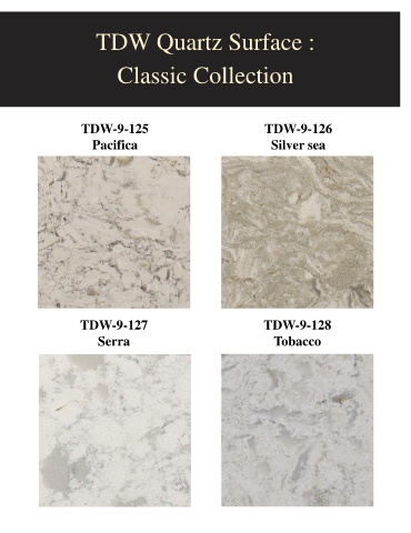TDW Quartz Surface : Classic Collection TDW-9-125 TDW-9-126 Pacifica Silver sea D4103 D1720 TDW-9-127 TDW-9-128 Serra Tobacco D7304 D7100